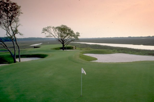 Scenic course with a lot of holes along the salt marsh. Course played difficult, especially with the wind. Disappointed with the greens. They were slow and had a lot of debris on them. Had a putt jump sideways because it hit a small pebble on the green. Did not think the course was worth the price we paid.